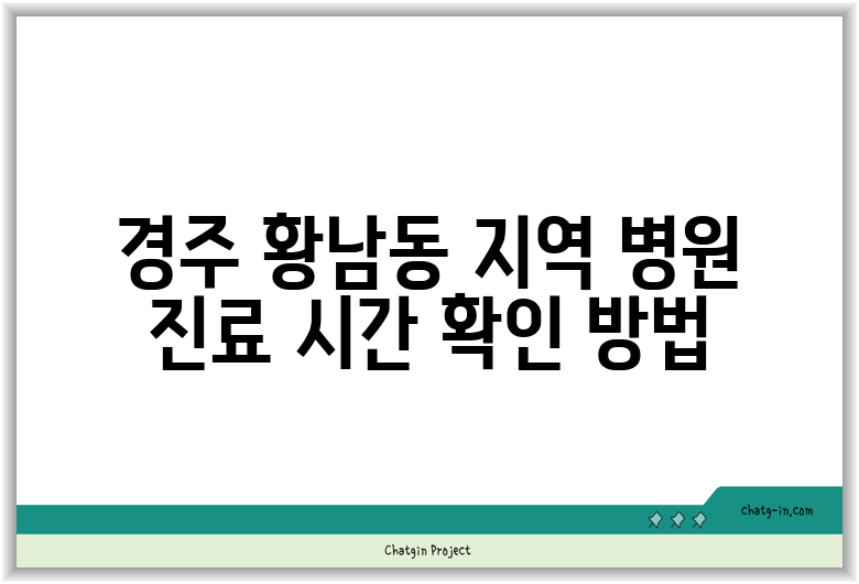 경주 황남동 지역 병원 진료 시간 확인 방법