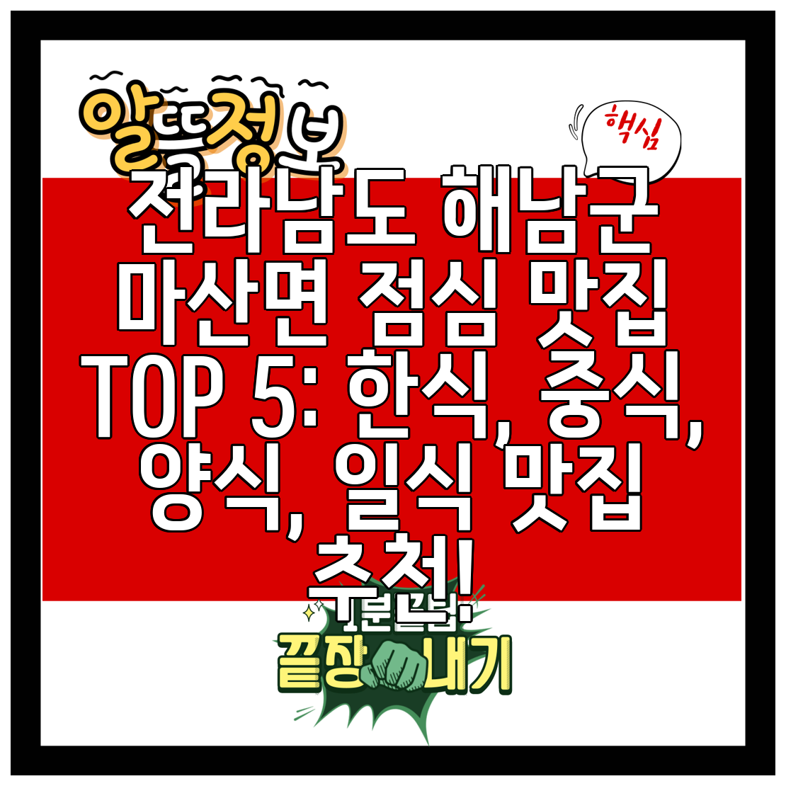 전라남도 해남군 마산면 점심 맛집 TOP 5: 한식, 중식, 양식, 일식 맛집 추천!