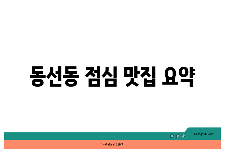 점심시간, 맛있는 식사는 하루의 활력을 불어넣어 주죠! 하지만 바쁜 직장생활 속에서 매일 같은 메뉴에 지치셨나요? 서울 성북구 동선동에서 맛있는 점심을 먹을 수 있는 최고의 맛집 5곳을 엄선하여 소개해 드릴게요. 한식, 중식, 양식, 일식까지 다양한 장르를 섭렵하여 여러분의 입맛을 사로잡을 준비를 마쳤답니다!