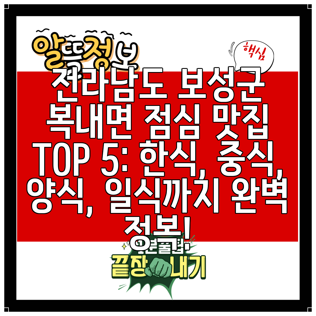 전라남도 보성군 복내면 점심 맛집 TOP 5: 한식, 중식, 양식, 일식까지 완벽 정복!
