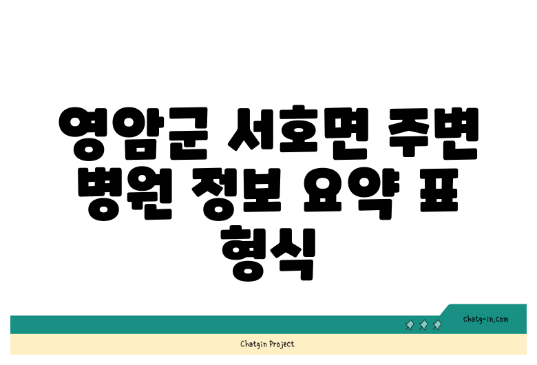 영암군 서호면 주변 병원 정보 요약 (표 형식)
