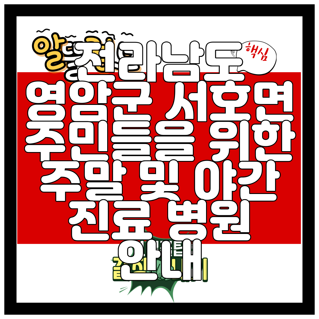 전라남도 영암군 서호면 주말 및 야간 진료 가능한 병원 찾기: 갑작스러운 응급 상황, 이젠 걱정하지 마세요!