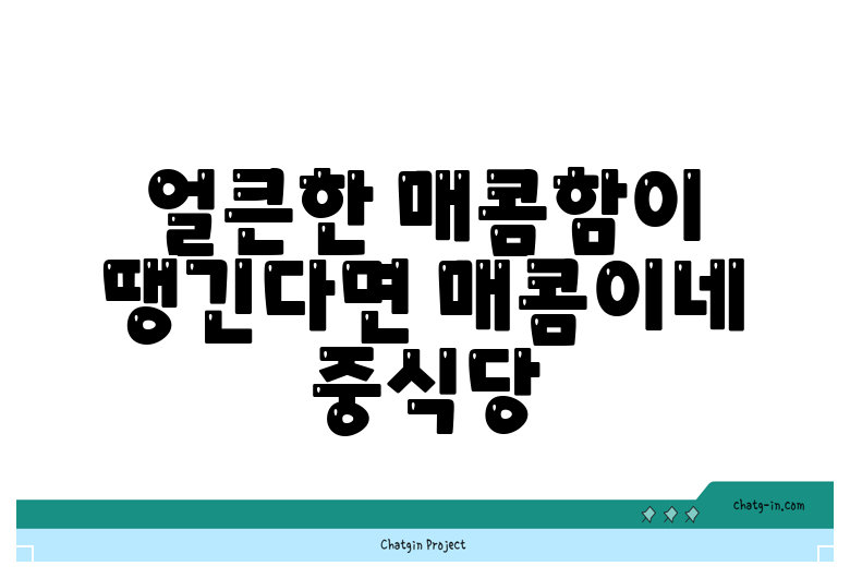 얼큰하고 매콤한 중식이 생각난다면 '매콤이네 중식당'으로 향해보세요! 이곳의 짬뽕은 시원한 국물과 쫄깃한 면발의 환상적인 조화가 일품이에요. 다양한 중식 요리도 맛보실 수 있는데, 특히 탕수육은 바삭한 튀김옷과 부드러운 고기의 완벽한 조화로 많은 분들에게 사랑받고 있답니다. 점심 시간에는 런치 세트 메뉴가 준비되어 있어 더욱 경제적이에요.