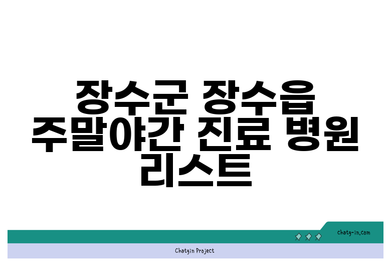 장수군 장수읍에서 주말이나 야간에 진료하는 병원은 많지 않지만, 꼭 필요한 경우를 대비해서 미리 알아두시는 것이 좋습니다. 아래 테이블은 현재 확인된 정보를 바탕으로 작성되었으나, 변경될 수 있으니 반드시 전화로 확인 후 방문하시는 것을 권장합니다.