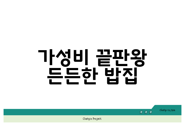 가성비 좋은 점심을 원하시는 분들께 "든든한 밥집"을 추천드려요. 김치볶음밥, 돈까스, 제육덮밥 등 다양한 메뉴를 저렴한 가격에 즐길 수 있어요. 양도 푸짐해서 배부르게 먹을 수 있다는 장점이 있답니다. 후식으로 제공되는 숭늉 또한 많은 분들에게 사랑받고 있어요.