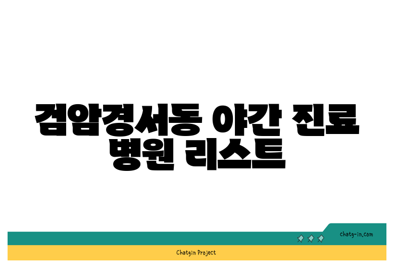 인천 서구 검암경서동 지역 야간 및 휴일 진료 병원 완벽 가이드