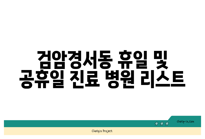 갑작스러운 응급 상황이나 주말, 공휴일에 병원에 가야 할 때, 어디로 가야 할지 막막하셨죠? 인천 서구 검암경서동에 거주하시는 분들을 위해, 야간 진료와 휴일 진료 병원 정보를 총정리해 드립니다! 더 이상 걱정하지 마세요. 이 가이드 하나면 편리하게 필요한 정보를 찾으실 수 있어요.